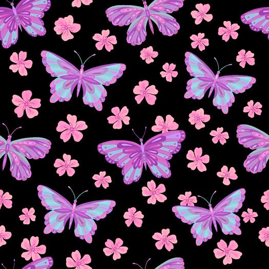 Indulge your artistic side with the **Butterflies & Flowers Collection**. This enchanting spandex showcases whimsical butterflies fluttering among delicate flowers on a dark backdrop, creating a romantic and captivating fabric perfect for statement apparel and creative projects.