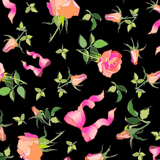 Ideal for Custom Apparel & Accessories: The vibrant roses and fuchsia ribbons on a black background make this fabric perfect for creating custom clothing, bags, scarves, and other accessories that demand attention.